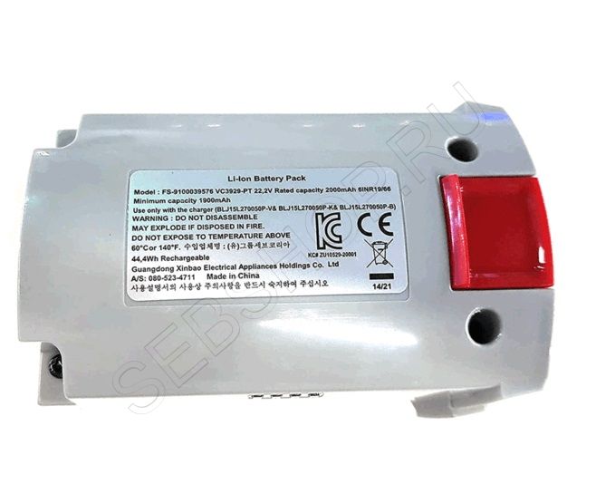 Аккумулятор Li-ion 22,2V беспроводного пылесоса TEFAL X-Pert 3.60 моделей TY6933, TY6975. Артикул FS-9100039576.